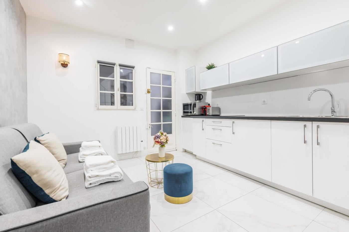 Appartement 1 Chambre. This apartment consists of 1 living room, 1 separate bedroom and 1 bathroom with a shower and free toiletries. Guests can make meals in the kitchen that is equipped with a stovetop, a refrigerator, kitchenware and a microwave. This apartment features a coffee machine, a seating area, flat-screen TV, as well as chocolate for guests. The unit offers 2 beds.